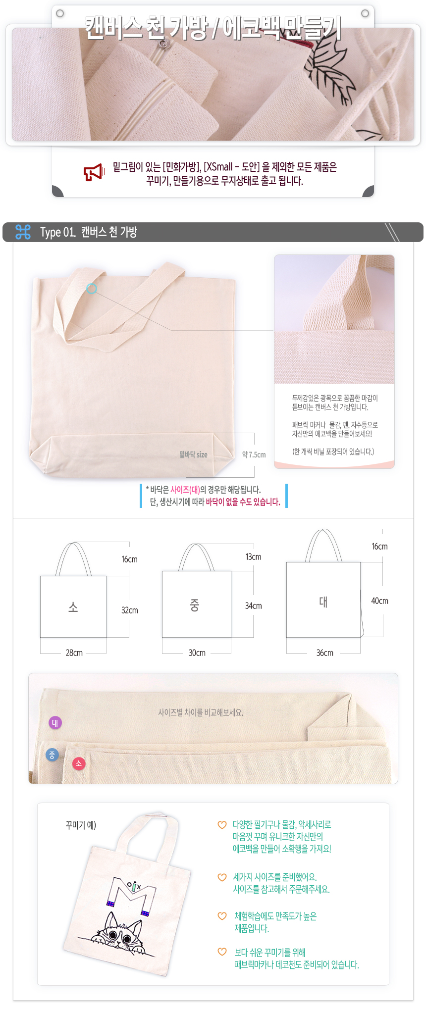 에코백 가방만들기 그리기가방 무지가방 공백가방 파우치 필통 동전지갑 광목천 섬유마카