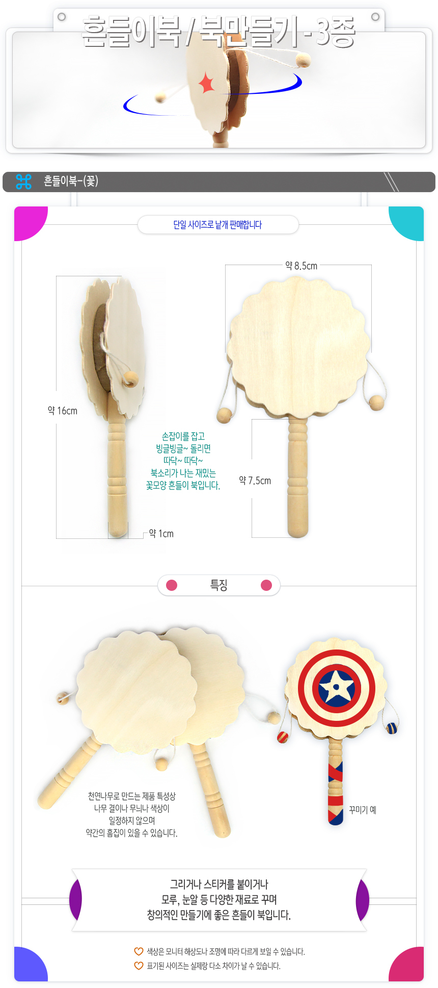 흔들이북 도리도리북 미니북 소고 전통악기 만들기 - 3종